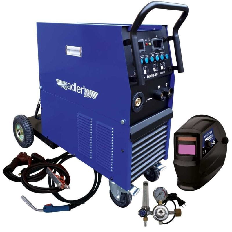 Adler INMIG-357 to profesjonalny inwertorowy półautomat spawalniczy, do spawania stali niskowęglowej, niskostopowej MAG, stali stopowej MIG oraz stopów aluminium. Urządzenie zapewnia możliwość spawania elektrodami otulonymi (funkcja MMA). Adler INMIG-357 jest zasilany jest napięciem 400V. Adler INMIG-357 jest stworzony do spawania konstrukcji średnich oraz lekkich w warunkach warsztatowych, jak i przemysłowych. Urządzenie może być użytkowane zarówno wewnątrz, jak i na zewnątrz pomieszczeń zamkniętych.