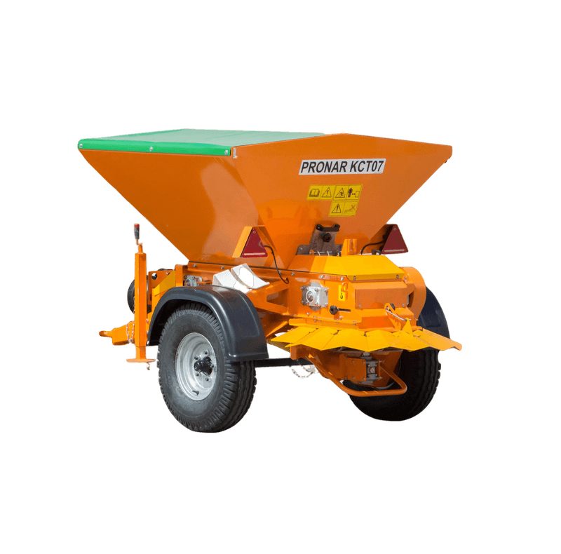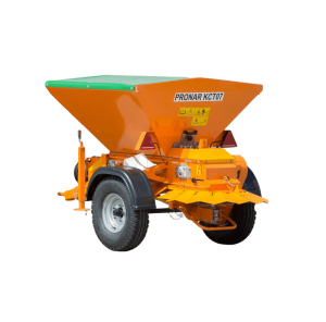 Posypywarka Pronar KCT07 (ciągniona) to idealne urządzenie do zimowego utrzymania dróg i chodników w małych miastach, gminach i wsiach. Znajdzie zastosowanie wszędzie tam, gdzie nie można wprowadzić dużych posypywarek. Konstrukcja maszyny ciągnionej o nacisku na sprzęg max. 250kg mniej obciąża oś ciągnika, dzięki czemu może być agregowana z małymi traktorami o niewielkiej mocy. Posypywarka Pronar KCT07 może być ciągniona również za pomocą dolnej belki ciągnika. Niewielkie gabaryty i masa całkowita nie przekraczająca 1,5 tony, pozwalają pracować maszyną z małymi, zwrotnymi ciągnikami i wykorzystywać ją nawet przy posypywaniu chodników.