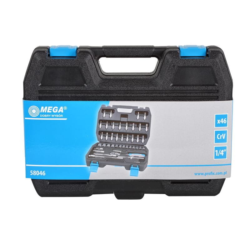 Zestaw kluczy nasadowych 1/4" oraz końcówek 1/4'' marki Mega o symbolu 58046 wykonany jest z wysokiej jakości stali. Polecany on jest zarówno dla zwykłych majsterkowiczów ale i także do małych warsztatów. W zestawie znajduje się 46 elementów, które są dostarczane w solidnej walizce transportowej wraz z uchwytem.