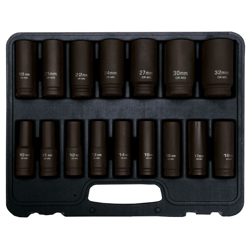 Przedstawiamy zupełnie nowy zestaw nasadek udarowych AD-16D, w skład zestawu wchodzi 16 sztuk nasadek udarowych długich w najpopularniejszych rozmiarach. w tym także rzadko spotykane w innych zestawach nasadki w rozmiarach 27 mm, 30 mm oraz 32 mm.